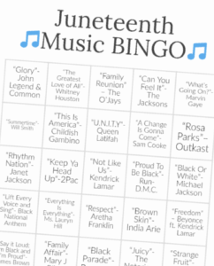 In honor of this historic event, DOORWAYS housing programs host events for residents. This year’s activity was a night of fun and fellowship, playing music bingo at Elliott Place. Each guest received a bingo card filled with song titles. As clips of the songs were played, participants marked their cards until a winning combination was reached. Winners chose from a colorful table of prizes. A buffet of snacks, including themed popcorn, set the tone for the celebration.